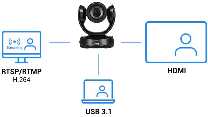 With the CAM520 Pro3, you can effortlessly deliver simultaneous 1080p60 presentations through HDMI and USB 3.1 streaming or RTSP/RTMP H.264 broadcasting. Utilize the HDMI, USB-B, and streaming capabilities for your production needs.